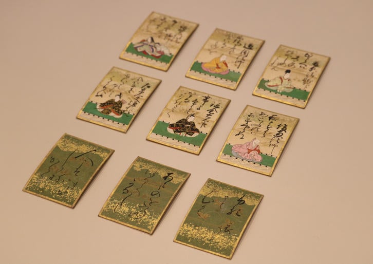 そうです。かるたはポルトガルから入ってきて、「うんすんかるた」(トランプを日本でつくりかえたカルタ)が変化して百人一首などになったと言われています。かるたの形の百人一首は江戸時代にならないと見られないのですが、17世紀には相当たくさん質の高いかるたが出回っています。