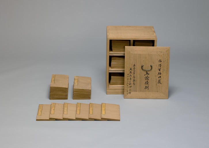 福澤家の禄高は、十三石二人扶持といい、5人の子どもを育てる家庭にとっては苦しい家計であったに違いないが、読書好きの百助は熱心に書物を購入し、その蔵書は1,500冊にも及んだ。中には、容易には手に入らない高価な本もあった。その中の1つに64冊からなる『上諭條例』という漢文の書籍がある。