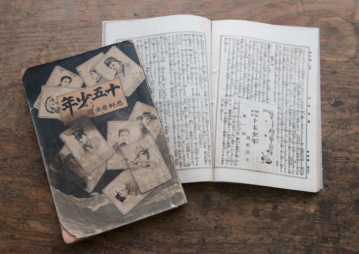 中でも有名なものが、『十五少年』である。ヴェルヌの作品『二年間の休暇』を翻訳し、明治29年に博文館の少年向け総合雑誌『少年世界』で連載したもので、英訳されたものを日本語訳した「重訳」である。ニュージーランドを舞台としたこの作品は、チェアマン学校の生徒たちが2ヶ月の夏の休暇を利用して航海しようと乗り込んだ船の纜(ともづな)が解け太平洋に漂流してしまい、2週間の嵐を乗り越え無人島に漂着するところから物語が始まる。8歳から14歳までの国籍の異なる15人の少年たちが、この無人島で2年間を乗り越えて無事に帰国するまでの冒険を描いた漂流記である。