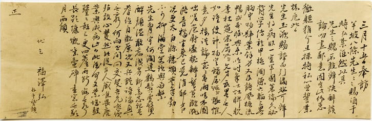 大坂暮らしが続いた福澤家に異変が生じたのは、諭吉が生まれてからわずか1年半後の天保7(1836)年6月。諭吉の父百助が急死し、残された母子6人は中津に帰ることとなった。このとき、諭吉の兄三之助は、まだ数えで11歳に過ぎなかったが、福澤家の家督を相続することになった。