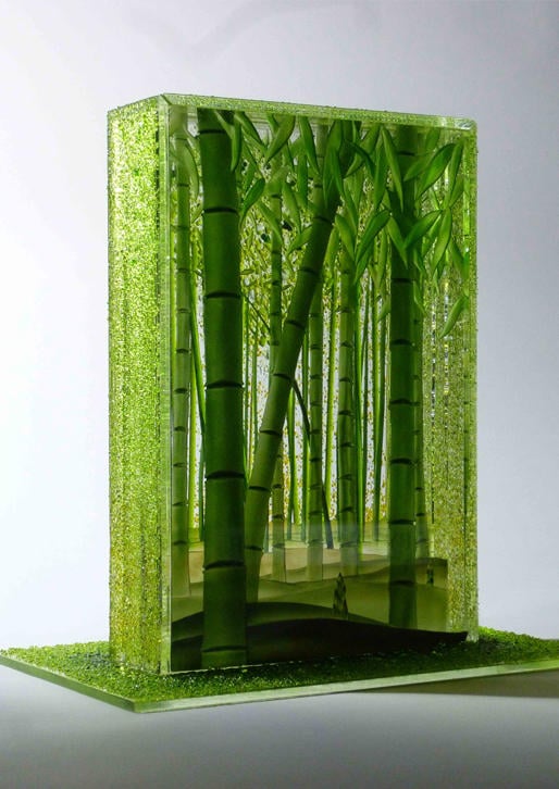 ガラス工芸のエッチンググラス・ステンドグラス分野で創作活動をしています。テーマは「自然」「未来」で、単に植物や風景をリアルに描写するのではなく感性ある表現を心掛けています。伝統的な作品を凌駕し新しく高度な技術を研究開発し、研鑚努力して習得した技を作品に生かす向上心が大切だと考えています。