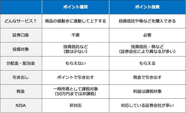 ポイントを元手に投資ができるサービスには、「ポイント運用」と「ポイント投資」があります。