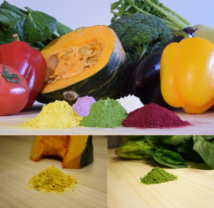 また、色素成分に着目すれば、染料として活用することもできる。豊島株式会社のフードテキスタイルは、野菜で染めたアパレルブランドを展開している。粉末化することで色素抽出効率を高めることもできるだろう。