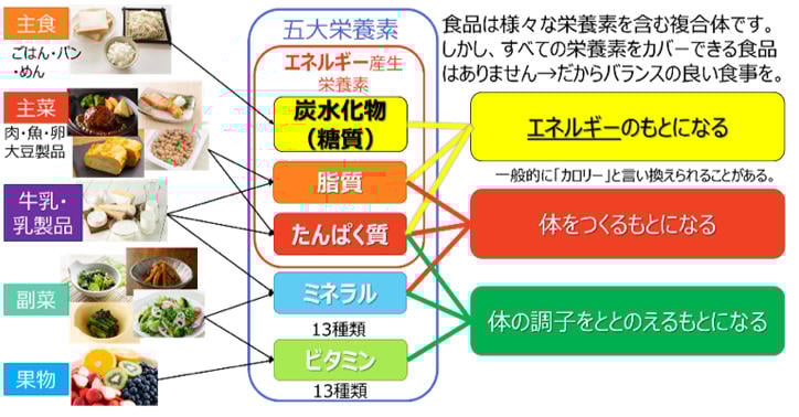 「食育の基本」のセミナーでは、人のカラダは食べ物でできていて、人は生きていくために適切な量の栄養素を食事から摂取することが必要なこと(図4)などを、科学者である講師からわかりやすく解説。受講した方からは、大変分かりやすく、楽しく学べると好評で、コロナ禍の半年間で約400名の方々に参加いただきました*5。