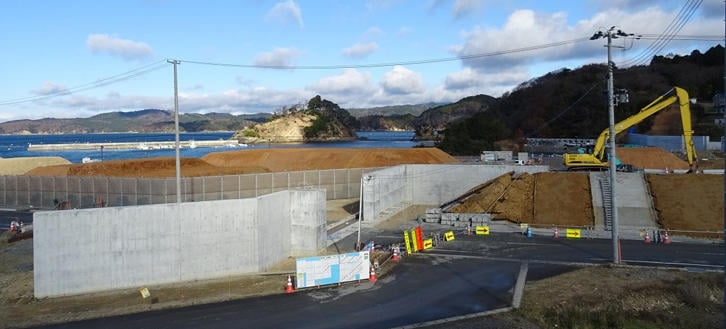 宮城県石巻市小渕浜。東北のリアス式海岸の南端、牡鹿半島の1つの漁村で今、防潮堤の建設が始まった。海に沈む夕日の眺めが売りの民宿の前に今ごろになって防潮堤が造られ始めたこと、その工事の砂塵・騒音で(このコロナ禍で)窓を開けての通風もままならないことを女将は嘆き憤っていた。