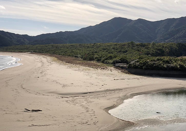 筆者と共同研究者は2017年10月からニッセイ財団の助成を受け「南海トラフ巨大地震による津波を想定した生態系減災(Eco– DRR)手法の開発」と題した研究を開始した。本特集の座談会に登場している環境情報学部大木聖子准教授もそのメンバーの1人である。研究対象地として、高知県と徳島県を取り上げ、高知県においては30m以上もの津波に襲われると予測されている土佐清水市を選定した。土佐清水市は、高知県の最南端に位置し、数多くの台風が上陸してきた足摺岬を持つことで有名である。急速な人口減少と高齢化に対応することが求められているが、一方で海岸線のほとんどが足摺宇和海国立公園に指定されており、風光明媚な景勝地として知られている。土佐清水市役所からも協力を得ながらいくつかの研究を進めているところであるが、中でも私たちは大岐海岸の海岸林に注目している(写真上)。
