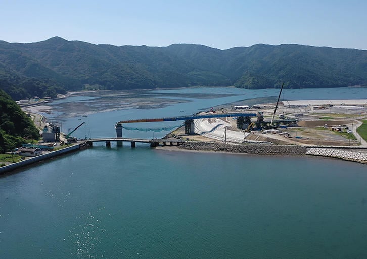 画像:復興工事が進む長面・尾崎集落(2019年8月2日、槻橋修神戸大学准教授によるドローン撮影)