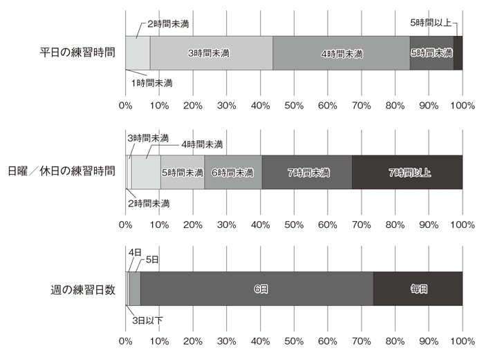 こうした歴史的経緯が戦後の高校野球に影響を与えたことは間違いないだろう。図1が示すように、高校野球部では、ほぼ毎日長時間にわたる練習が常態化している。また、高校野球指導者の約1割が体罰を容認しているとの調査報告もある(*1)。教育には投資的側面があることから、理不尽と思える状況であっても〝将来のため〟として正当化されてきたと思われる。