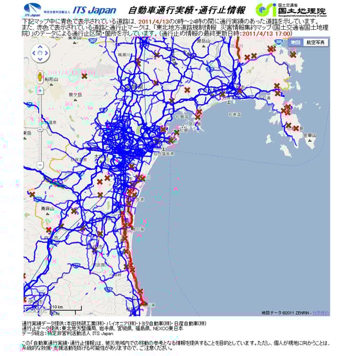 阪神・淡路大震災と東日本大震災をIT支援という切り口から眺めると、その最も大きな違いは、多数のユーザーの参加による情報のマッチングと、地図情報の利用である。東日本大震災の発生後、Amazonは、プレゼントの購入支援サービスとして運用していた「ほしい物リスト」を被災地向けにカスタマイズし、被災地の人々が必要としている物資を、世界中の人々がAmazonで購入して届けることができるというマッチングサービスを展開した。Googleは、インターネット上の安否確認サービスであるPerson Finder と並行して、避難所に掲示された安否確認の張り紙の写真を収集し、全国のネットボランティアがそれをPerson Finder に入力するというクラウドソーシング型の支援を行った。ITを活用した交通社会の改善に取り組んでいるITS Japanでは、被災地域のカーナビから送信された通行実績情報を集積し、「震災後も車が通れる道」に関する情報提供を行った。sinsai.infoというウェブサイトでは、ネットボランティアたちが、収集した被災者のニーズや支援に関連する情報を、Open StreetMap と呼ばれる利用制限のないオープンな電子地図にマッピングして公開するという活動を続けた。電子掲示板上での文字による情報交換が主だった阪神・淡路大震災当時と比較すると、地図をはじめとするインターネット上の様々なサービスの拡大により、支援活動の質・量ともに格段に向上していることがわかる。