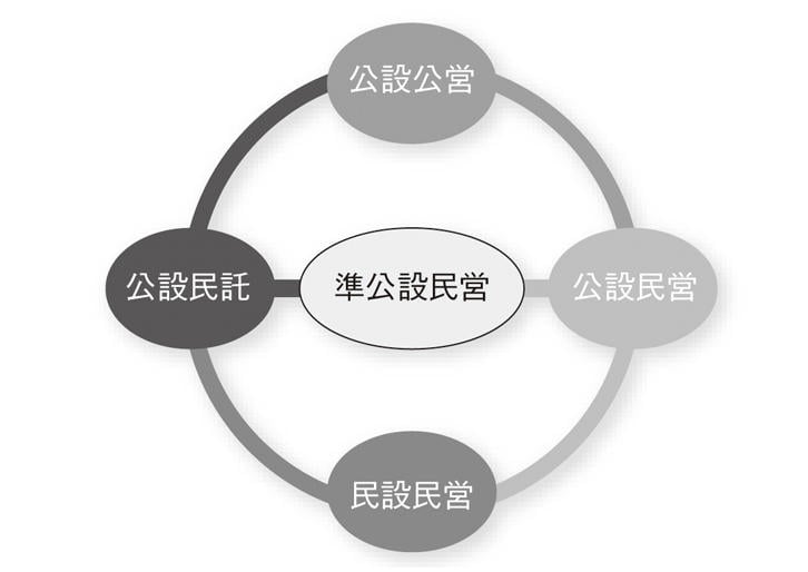 今後の公共交通の経営スタイルは、図のように「公設公営」と対極の「民設民営」と、公設公営のコストとサービス問題を解決する「公設民営」と、運行全般を委託による「公設民託」と大きく4つがあり、また過去の経緯や行政上の取り扱いやすさから、「準公設民営」や「準公設民託」等があるということになるでしょう。井笠鉄道の再建スキームとしては、公設民営と公設民託の機能を併せ持った「準公設民営」方式が最適として再生しました。