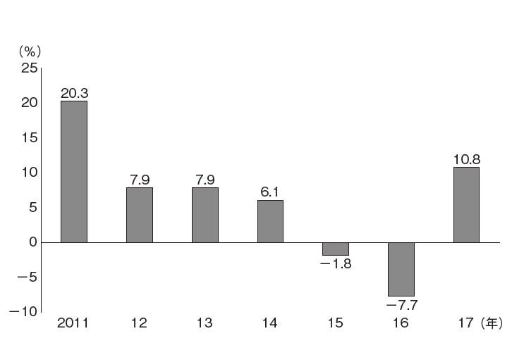 中国経済に異変が起きたのは2015年頃だった。それまで順調に拡大していた輸出は2015年と16年の2年連続でマイナス成長となった(図1)。中国経済にとって貿易は生命線である。なぜ、順調に成長していた輸出が急に減速したのだろうか。この時期、中国の輸出先国では特段の経済危機が起きていないことから、中国国内に目を向けなければならない。