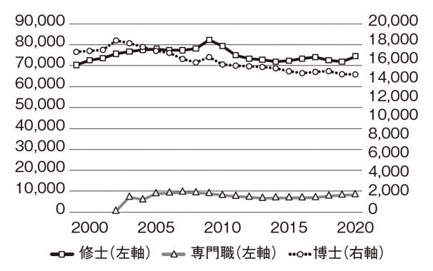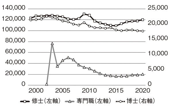 21世紀の大学院政策を振り返ると、2003年に専門職大学院が制度化され、2005年の答申「新時代の大学院教育」を受けた「大学院教育振興施策要綱」に基づいて、COEプログラムや大学院GP等の施策が打ち出された。また2011年の答申「グローバル化社会の大学院教育」を受けて、「博士課程教育リーディングプログラム」も開始した。しかし、大学院制度やそれを前提とした諸施策に対しては疑問や批判の声も後を絶たない(例えば天野2011や金子2013等)。それだけ大学院制度は様々な課題を抱え、種々の施策もそれを打破する妙薬とはなり得ていない。以下では、大学院を考える基礎資料である各種の統計・調査に立ち返り、2000年以降の大学院問題を博士課程にフォーカスしつつ、卒業後のキャリアや奨学金等の支援の観点から考えてみたい。