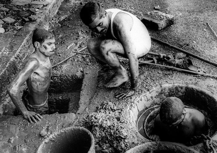ヒンドゥー教において、排泄物、廃棄物は不浄の最たるものと考えられ、それらとの接触が避けられない清掃、洗濯、動物の屍体処理の仕事はダリトに限られてきた。職業と身分意識は密接に関係しているのである。日本で公開されたインド映画『裁き』(Court, 2014)は、トイレ事情にかかわるもうひとつの悲劇を描いている。法廷劇を中心に展開されるが、前半に、「ある下水清掃人の死体が、ムンバイのマンホールの中で発見された」というエピソードがある(警察は「自殺」を主張)。インド社会で「下水清掃人」といえば、カースト最下層のダリト出身であることは明らかである。降雨量が増すモンスーン期(6〜9月)は、未整備の下水道から汚物を人力で清掃する多くの清掃人がマンホールのなかで命を落としていることは日本であまり知られていない。下水清掃人は日雇いで、防御マスクなどの十分な器具も与えられず、その労働環境は非常に過酷で不衛生である。人権侵害という観点からも廃止すべき職業として、1993年に禁止する法律が制定されているが、実際にはなくなっていない。過去10年間で1,800人近くの下水清掃人が作業中に窒息死しているというNGOの報告もある。社会問題として、ダリト出身の活動家たちによる下からの運動が海外の人権機関の資金援助を得て行われている。