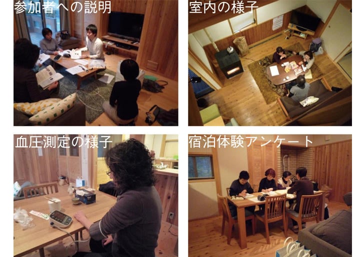 この社会課題への対応策を検討しようと、高知県梼原町(ゆすはらちょう)において、「健康長寿を実現する住まいとコミュニティの創造(研究代表・伊香賀俊治)」という事業が展開された*3。ここでは、町内の高齢者に高断熱高気密のモデル住宅と自宅の違いを、肌で体験してもらう宿泊体験学習を実施した。自宅とモデル住宅の双方で温湿度の測定や熱画像の撮影、さらには家庭血圧や睡眠の質等についても測定しており、目でも体感できるプログラムとした。参加者からは「モデル住宅は廊下でも寒くなかった」、「自宅がいかに寒いか実感した」、「寒い日は朝の血圧が高いことがわかった」などの反応があり、住民の気づきにつながった。また、知人同士で参加してもらったことにより、モデル住宅と自宅の室温比較に留まらず、知人の家との比較までも行われており、とくに寒い人が問題意識をもつことにも寄与していた(図1)。