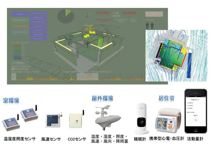 改めて、コエボハウスの名前の由来、Co-Evolution(共進化)が重要な問題提起になっていたと感じる。当時考えたのは住宅が人工知能的に居住者の生活様式を学習しその機能を進化させるとともに、住宅のもつ環境に促されるように、居住者の生活意識もよりサスティナブル方向へ進化していくというコンセプトだった。その背景にあったのは、活動状況のモニタリングと制御アルゴリズムを相互作用的に高めていくシステムが、多様な条件の解決に有利だろうという考えであった。