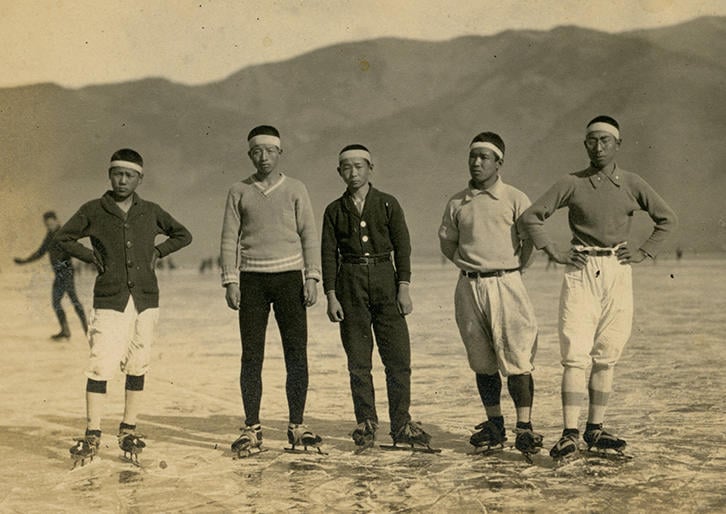 日本におけるスケートは明治20年代頃から札幌、仙台、諏訪などで凍結した湖の天然リンクで始まった。当初は外国人宣教師や留学帰りが中心であったが、塾生たちも明治40年代には諏訪湖に愛好家が集まってスケートを楽しんだという。しかし革製のスケート靴は極めて高価で、だれでも容易に入手できるわけではなく、そこで考案されたのが下駄にブレードをつけた代用品の下駄スケートであった。諏訪では明治30年代末より量産され、年々改良が加えられていき、スピード用、フィギュア用と用途に応じた進化も遂げるなど冬の娯楽としてすっかり市民権を得たのである。