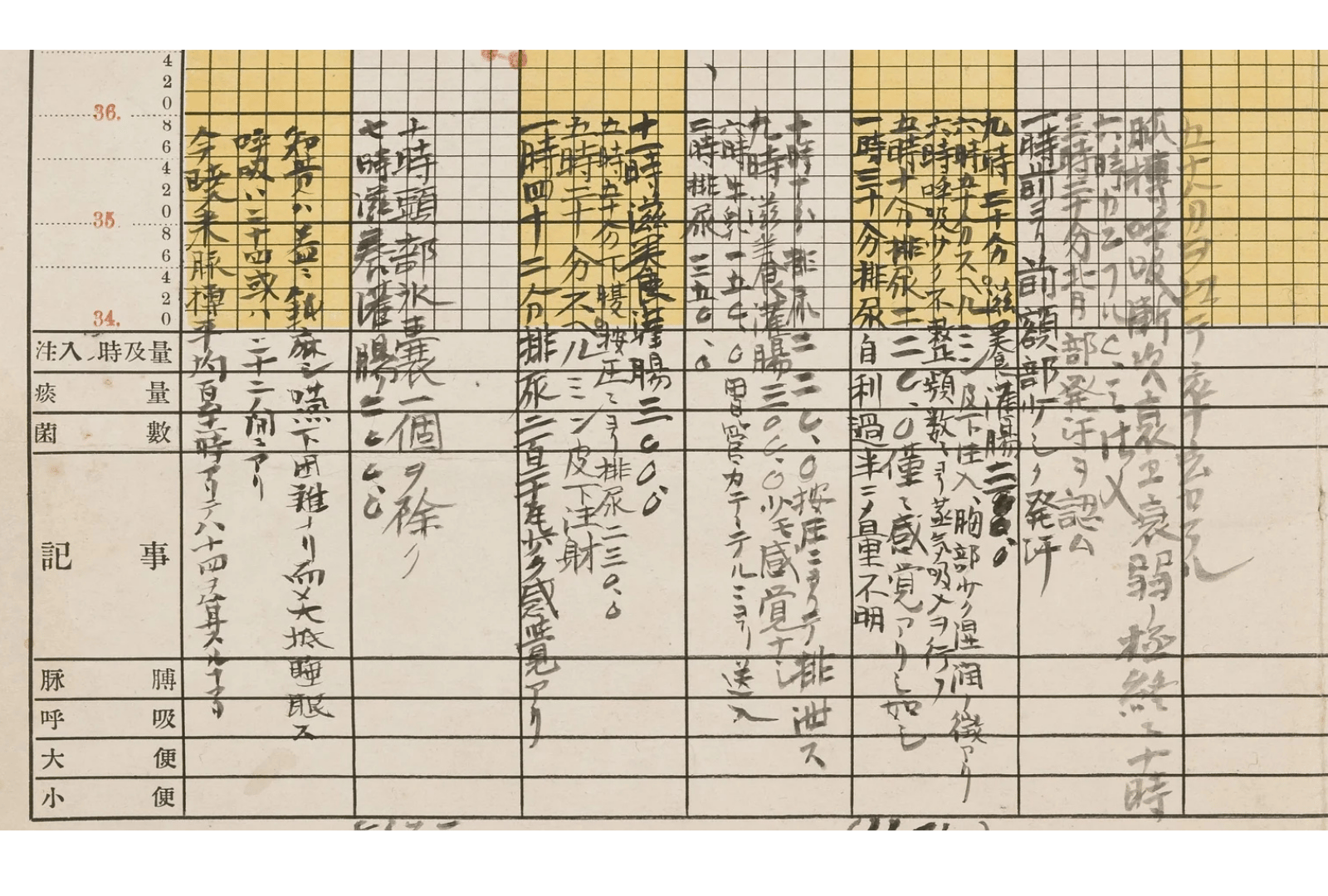 それらの記録は、明治34年2月3日午後10時50分、福澤の死によって終わりを迎える。折れ線グラフで容態を伝えるこの資料は、他の病状記録からは1つだけ離れて、古くから慶應義塾図書館に収蔵されていた。松山がこれだけは先に歴史的資料として納めたのであろう。死の瞬間まで冷徹に数値で記録する紙片。それは科学的精神を鼓吹した福澤に相応しいものともいえようが、やはり粛然と襟を正させられる迫力を持つ。(慶應義塾史展示館春季企画展「福澤諭吉の臨終―独立自尊の誕生」、会期: 2026年6月18日~8月29日にて展示予定)