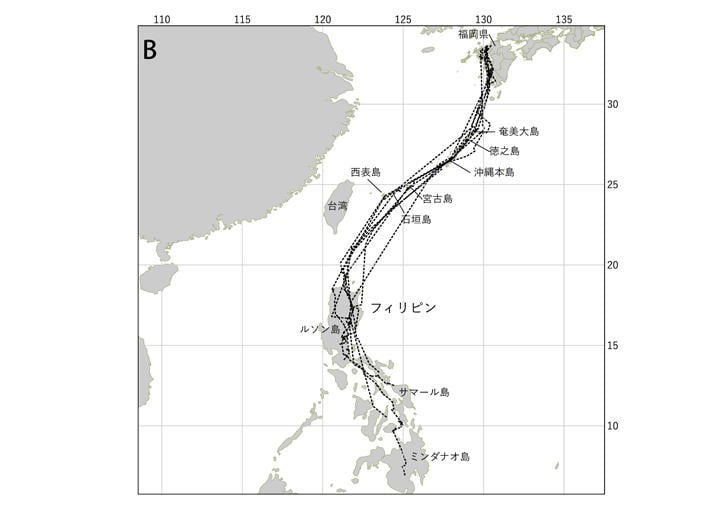 最後まで移動し続ける鳥は、11月5日にルソン島に入り、その後もずっと南下を続け、1月初めになってようやくミンダナオ島の南で渡りを終える、ということがわかりました。
