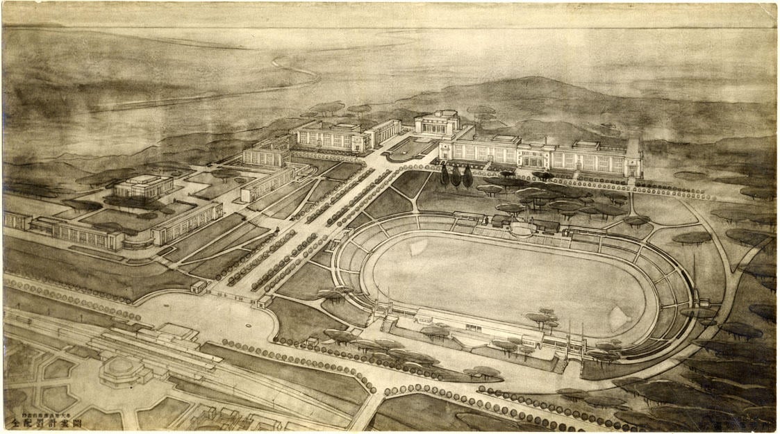日吉キャンパスは、1934(昭和9)年に創設され、銀杏並木や陸上競技場、第一校舎、第二校舎、蝮谷テニスコートなど、今のキャンパスの原型がその頃、出来上がっている。この計画を手掛けたのが、曾禰中條建築事務所で、マスタープランを作るとともに、創建当時の各建物も曾禰中條による設計がほとんどである。