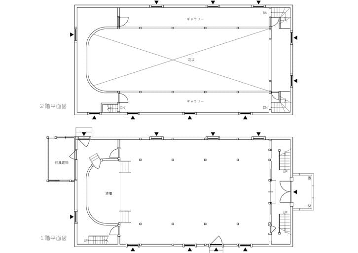 演説館は木造、2階建て、282㎡の小さい建物であるが、建築的にも価値が高い。明治初期の擬洋風建築で、外観は、日本の伝統的な「蔵造り」で外壁を漆喰で仕上げられ、防火、防湿、防盗の機能に優れている。演説館の外壁はなまこ壁を採用しており、独特の意匠で、外壁に一辺が1尺の正方形の「平瓦」をひし形状に貼り付け、その瓦の継ぎ目に、漆喰を蒲鉾状に盛りつけて塗る工法である。通常の土壁の蔵造りより、瓦を敷き詰めるため、高級で、耐火性に優れたものである。