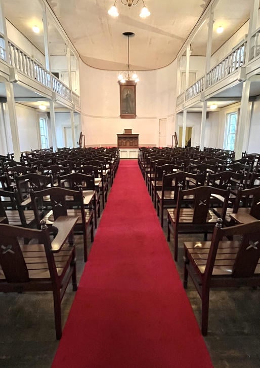 演説館は、150年の間に保存修繕が何度も行われている。元々、三田キャンパスの塾監局と図書館旧館の間に建っていたが、大正12年の関東大震災をきっかけに、今の場所に移築されると同時に、大きく修繕された。昭和20年の戦災では、三田キャンパスは甚大な被害を蒙ったが、なんとか、焼失は免れた。その後の昭和22年に、老朽化や破損した個所を大幅に修繕している。平成8年には15カ月にわたり、全面的な大改修が行われ、同時に耐震補強も施された。現在、椅子は144席が用意されているが、この椅子は昭和50年に演説館開館100年を記念して寄付されたものである。