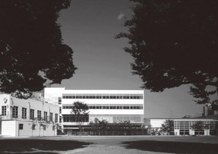 次に私が設計させていただいたのが、幼稚舎新館21(⑮)です。けやきホールという食堂があります。父の幼稚舎の建築(本館、自尊館、百年記念棟など)にはいろいろな様式がありますが、私はできる限り父の初期、1937年当時のモダニズムスタイルでいこうと思い、真っ白な感じの建築をつくったわけです。