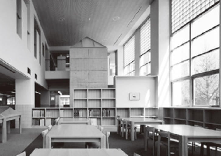 槇先生が設計なさった大学のキャンパスの中に、中高一貫の6年制の学校として、独自の領域をつくろうと思い、コートハウス(中庭形式)的というか、周りを一般教室で囲む構想にしました。そして、中心部分に共用で使う図書館、特殊教室や体育館を置き、教室との間に広場をつくりました。生徒たちが6年間を過ごすために、小さな街のような学校をつくろうと考えたのです。
