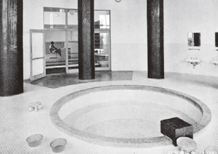 それでは、少し、父・谷口吉郎の建築を紹介していきたいと思います。まず、東京工業大学水力実験室(④)、こ れは大岡山の東京工業大学の入り口の横にあった建築です。父がいちばん最初に設計を手がけた建築です。プロポーションが当時、日本に導入され始めていたインターナショナルスタイルの建築です。全体が抽象的な線や面によって構成された非常にいい建築だったのですが、水力実験室なので、水から出た水銀がたまり、今から20年ぐらい前に解体されてしまいました。
