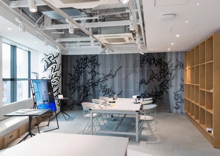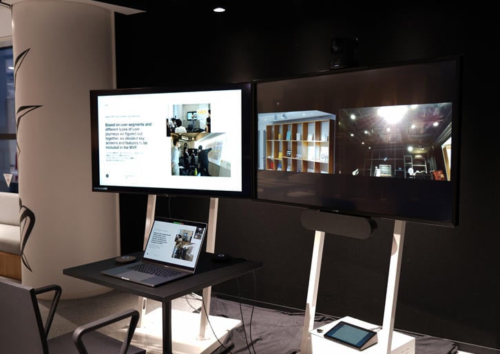 対面で得られる知識や情報のすべてを遠隔環境から得ることはできなくとも、自身の置かれた環境によって「学びや交流」が制限されることがあってはならない。そうした考えの下、スタジオには常設の遠隔会議システム(Zoom Rooms)を設置し、スタジオ内で実施するワークショップやレクチャーすべてへの同時双方向参加を可能にした。また、BYOD(Bring Your Own Device)にも対応することで、利用者・利用環境の多様性に配慮し、実用性と可用性を高める工夫をしている。