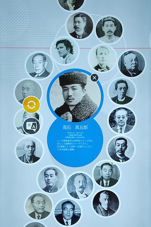 すると日本の最初の五輪メダリストであるテニス選手・熊谷一弥、講道館四天王と謳われた柔道部初代師範・山下義韶、宮武三郎ら六大学野球のスター選手、アルプスのアイガー東山稜初登頂などで世界的に有名な登山家・槇有恒、ベルリン五輪の友情のメダルで知られる棒高跳び選手・大江季雄、ミュンヘン五輪金メダルを獲得したバレーボール男子日本代表監督・松平康隆、蹴球部をラグビー日本一へ導いた監督・上田昭夫など、慶應義塾体育会のみならず日本スポーツ史を彩る面々の肖像アイコンが集まってくる。そこでアイコンに触れると詳細を確認できるというわけだ。