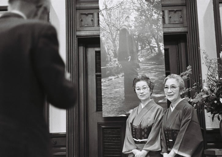 画像:左から、安東伸介名誉教授、秋山加代氏、小泉妙氏、小泉準藏(1996年5月11日)
