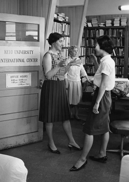 第二研究室1階にあった国際センターは、1964年にそれまでの外事部が発展的に解消して設けられた部署だったが、義塾の外国との交流が活発になるとともに、1980年代にはもっとも繁忙を極める部署の1つとなった。海外からの研究者や留学生を迎えるにあたっての研究・教育態勢の準備、留学生奨学金の選考、滞在住居の確保、入国・滞在関係の書類作成、派遣留学生の選考、塾生や教職員の海外留学に対する支援、海外大学との交流協定締結交渉などの義塾の国際戦略に関連する業務、帰国子女入試や留学生入試等々、「国際」と名のつく活動の業務一切を引き受ける「何でも屋」だった。また、留学生への日本語や日本事情の教育(1990年に別科として日本語・日本文化教育センターが独立)、塾生の留学準備教育なども担った。このようなことから第二研究室は、今は各キャンパスで当たり前となった文化的背景の異なる人々が集う三田山上では唯一の場所となっていた。
