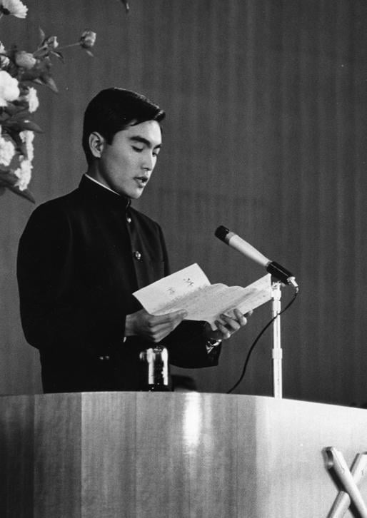 私は式典での祝辞で、最高学府としての独立自尊、気品の泉源、智徳の模範の大旗のもと、揚げ通した真理の灯は、今も我々の誇りとするものであり、武器を持つより将来50年、100年のために学べと言われた先生の学問的態度を受け継ぎ、新しく始まる100年への第一歩を踏み出すべきだ、さらに我が国は大きな転換期、或いは危機さえ孕む時代にたち至っているように思われる、と述べさせていただきました。