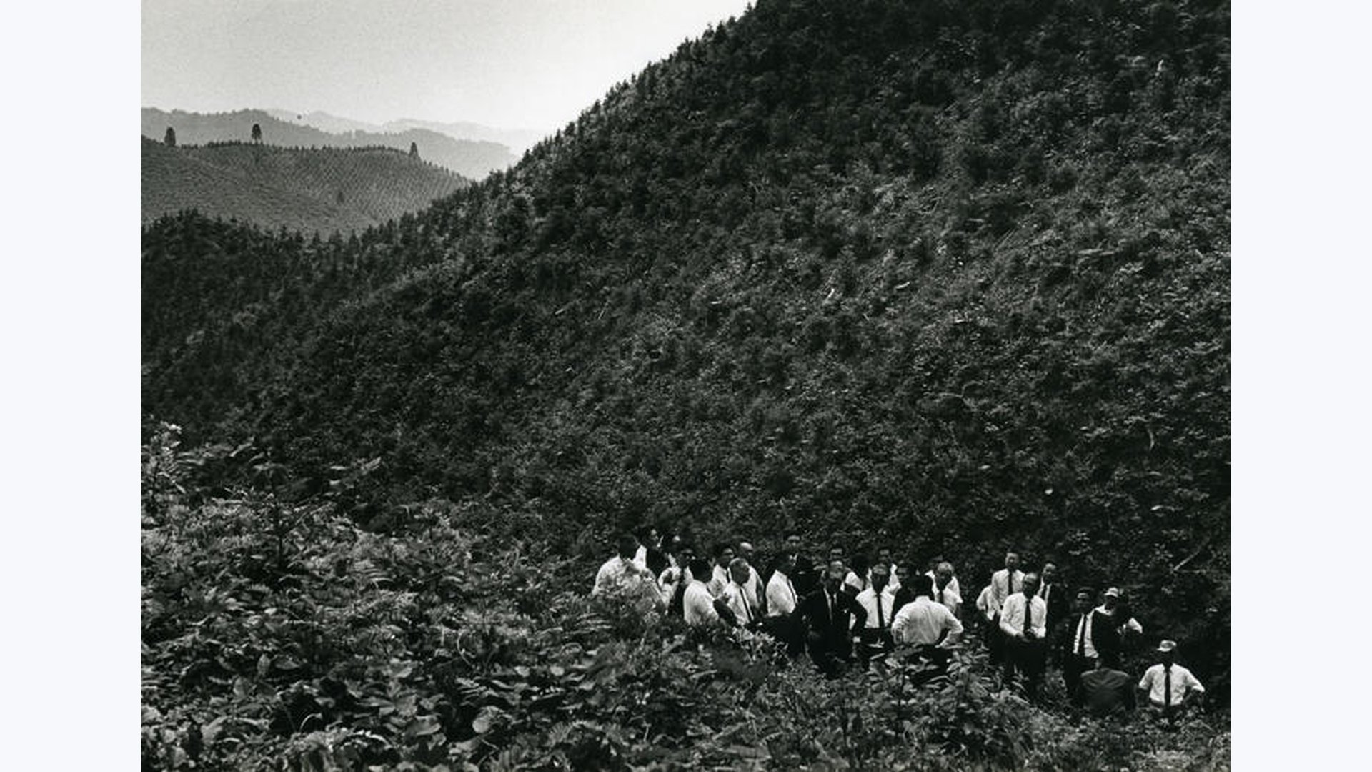 慶應義塾は塾債の発行などによってどうにか危機を切り抜けたが、高村前塾長は塾財政を長期的に安定させる方策の1つとしてかねて考えていた学校林造成に着手した。そのために結成された林業三田会と、林野庁や地元関係者の熱心な協力により、昭和40年に財団法人福澤記念育林会が認可され、福澤基金の援助も受けて最初の植林が那須伊王野で行われた。この写真にはその関係者の喜びがあふれている。高村前塾長は育林会の理事長を引き受け、いずれ50年後には1.5億円の貢献をしたいと期待を語った。
