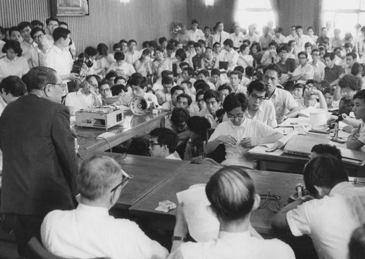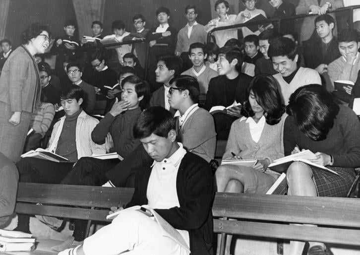 1960年代後半、全国の大学に学園紛争の嵐が吹き荒れ、ストによる長期間の授業停止、入学試験の中止、大学内建物の占拠などの事態を引き起こした。慶應義塾も例外ではなく、1968(昭和43)年には、一部学生らによる塾監局占拠も行われている。