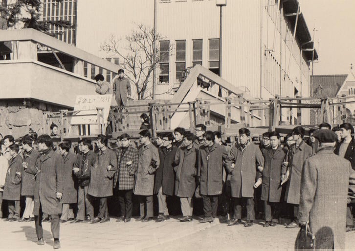 1965(昭和40)年1月からの「学費値上げ反対紛争」では、おとなしいとされていた慶應義塾の学生のストと立て看板等での他大学ではみられないゆとりやユーモアで、「まったく新しいタイプの学生運動」とマスコミに取り上げられ、続く混乱の時代の嚆矢となった。