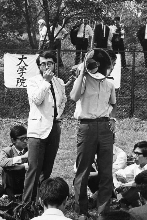 69年の大学立法闘争の時に佐藤朔塾長が行った日吉のラグビー場集会を粉砕するため、ハンドマイクでアジ演説をしに行ったが、そこには65年のときのような、塾生皆が総ぐるみになっていたような盛り上がりはなかった。
