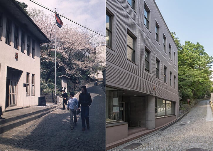 新旧の写真を見たとき、新本部棟で長い間体育会理事の職にあったにもかかわらず、旧本部棟の姿の方が私の心の中にしっくりと入ってくる。私にとって、学生時代から教員時代の長い年月の間、あの裏門(西門)から通学・通勤していた個人的理由なのかも知れない。