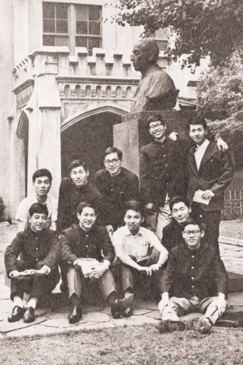 「第一研究室」は現研究室棟の東側半分程の規模で、その位置と形状は第一校舎に向い両袖を突き出したコの字型を成す鉄筋白亜の3階建てであった。その凹部中央奥に、福澤の胸像が設置されていた。この建物は、資料によれば、大正9年に予科校舎として建てられたもので、後の第2次大戦末期の空襲で大きな被害を受けた義塾にあって、中等部等を含む付設の諸学校の校舎として利用されるなど紆余曲折を経て、昭和26年に改修され第一研究室に転用された。第一校舎を背にして右側のウィングにあった入口正面に大学院生用の自習室、その左手奥に受付や事務室が連なっていた。