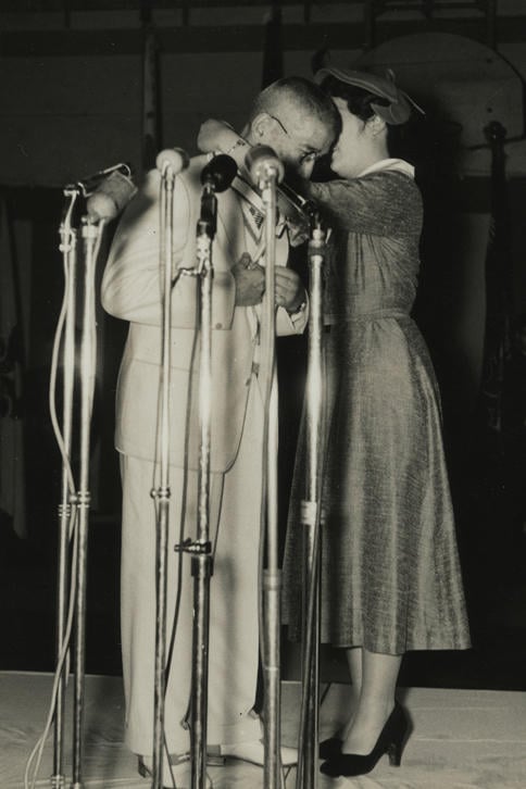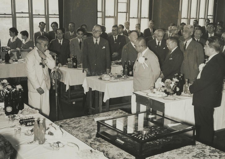 塾での催しに先立つ同年2月26日、日本体育協会、日本陸上競技連盟、東京六大学野球連盟等、平沼が世話した実に11スポーツ団体700余名が発起人となり、喜寿祝賀会は神田国民体育館でも行われていた。この際、芸術院会員の吉田三郎氏制作の胸像が平沼に贈呈された。この胸像が平沼から塾体育会に寄贈され、日吉陸上競技場に建つことになったという経緯である。同年11月には平沼は、スポーツ関係者としてはじめて文化勲章を受章した。