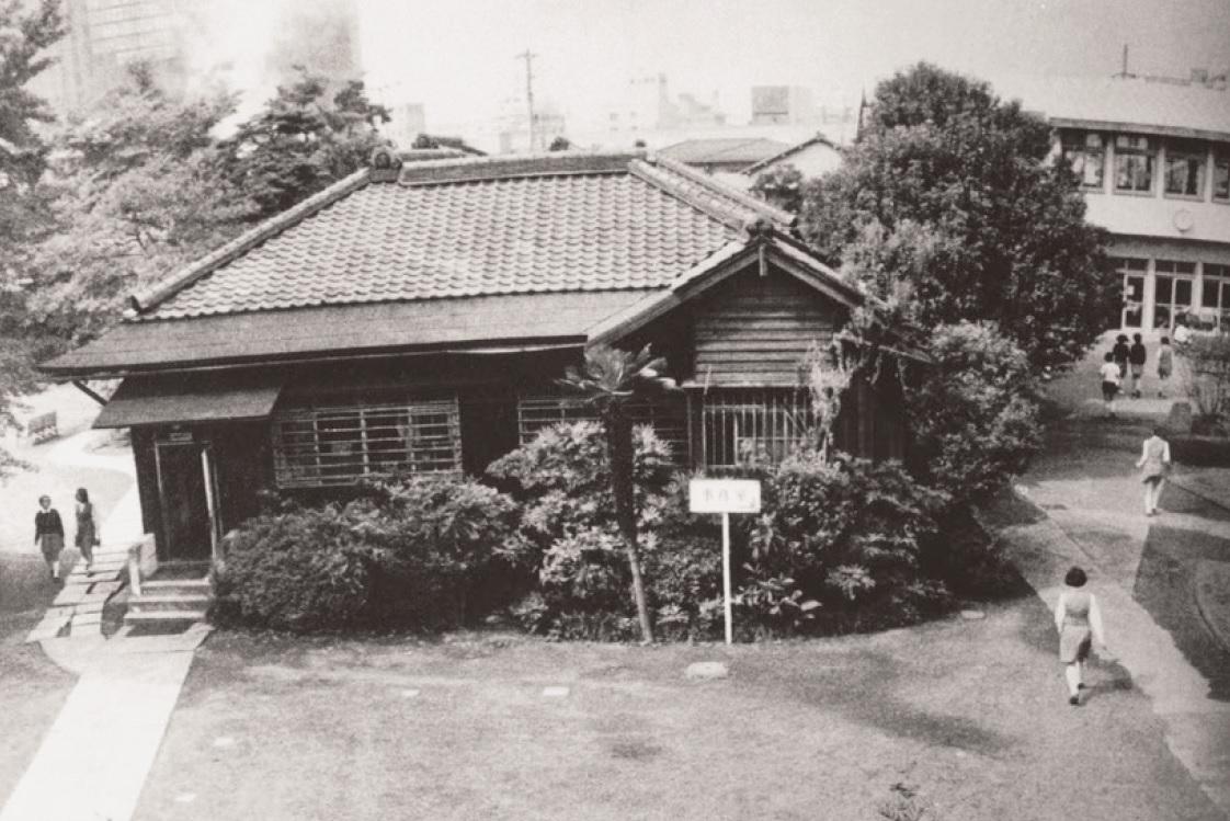 私が在学中の昭和36年から38年当時、慶應義塾女子高等学校は昭和26、7年に建てられた2棟の新校舎がありましたが、旧徳川達孝伯爵邸の建物も利用していました。改造された瓦葺き木造校舎は一号館として教員室、事務室のほか音楽室などの特別教室に利用しており、その隣りには図書室の建物がありました。女子高の敷地は戦前に義塾が徳川伯爵から購入したものでした。現在も敷地内に残る門は旧徳川伯爵邸の庭園に使用されていたものだそうで、十三重の石塔と庭園も残っています。当時は3クラスでアットホームな環境で学べました。その後、古い建物は一掃され、昭和49年に現在のコンクリート校舎に建て替えられました。