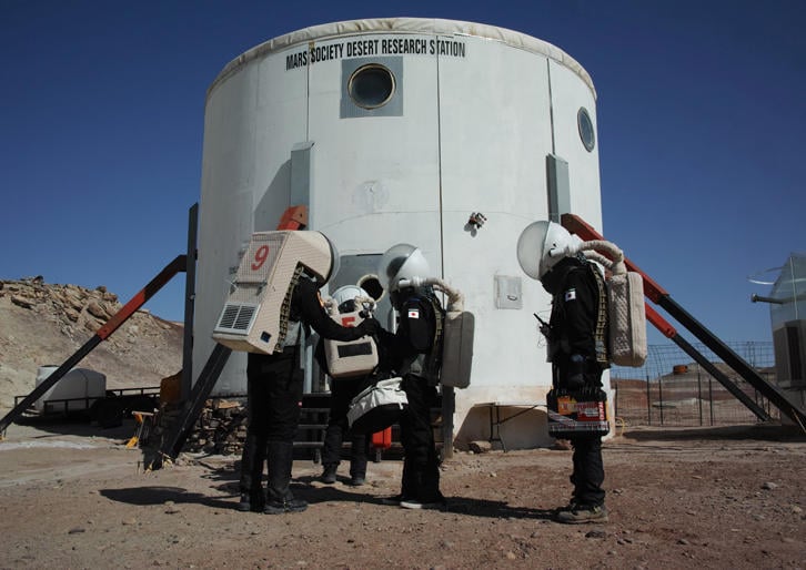 ロバート・ズブリン博士がやっているアメリカのNPO法人「マーズ・ソサエティ」がこのことを実際に試すために、北極のデヴォン島と、ユタ州の砂漠の2カ所を「地球にある火星」と仮定して、想定される基地のサイズ感のものを実際につくったのです。そしてユタの基地では毎年2週間ずつ6人ぐらいの10チーム程が、入れ代わり立ち代わり実験生活を送る。大学で宇宙研究をやっている研究者、宇宙関連の会社の人、またNASAからも来ています。