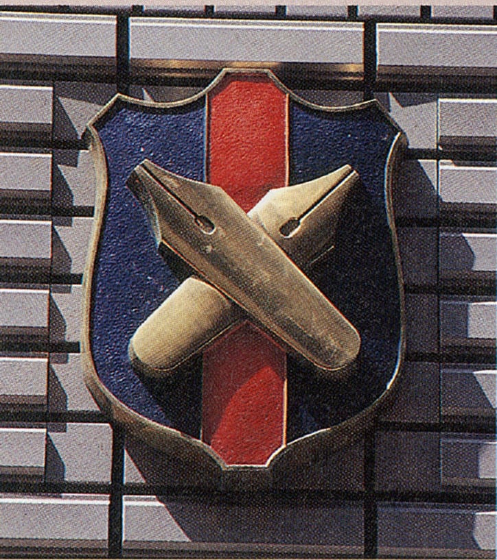 “ペンの記章”といえば、慶應義塾の校章として知られている。制定のいきさつは、塾生有志の間で勝手に使われだしたものが、いつの間にか塾当局が公認するところとなり、明治33年には特に大学部の塾生に対して「記章附帽子」着用のことが告示され、ついに今日に至るというもの。いかにも義塾らしい鷹揚さが感じられる。