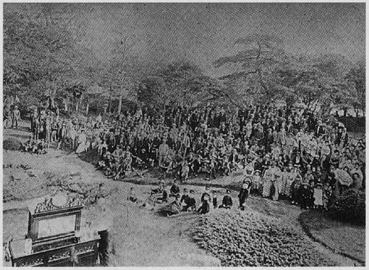 明治34(1901)年2月、福澤先生逝去。いわば大黒柱を失った慶應義塾だが、今こそ力を一つにしてその偉業を盛り立てていこうという社中一同の気概と連帯感はますます強固なものとなっていく。同年4月13日、広尾の福澤別邸で行われた同窓会で「慶應義塾同窓会規約」が協議され、満場一致でこれを可決。以来、規約にのっとり、毎年春秋2回の同窓会を定期的に開催することになった。