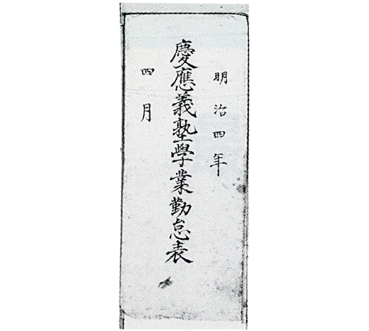 慶應義塾における成績表のルーツと言えるのが、小学課程から大学課程までの全塾生の出欠状況と学業成績を一覧表にした「慶應義塾学業勤惰表」(写真<1>)である。明治4年、慶應義塾が芝新銭座から三田山上へ移転直後より発行され、当初は毎月、後には年に3回印刷発行されていた。明治4年という年は、三田への移転ばかりでなく、塾内の規則として「慶應義塾社中之約束」が制定され、カリキュラムが刷新された年で、「学業勤惰表」の発行もこうした一連の新しい動きに呼応したものと考えていいだろう。