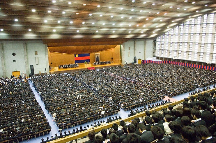 多くの人々から「三色旗」と親しまれている塾旗だが、「三色」といっても、実際は青と赤の2色を3段に配したデザインで、もともと慶應義塾が公式に制定したものではない。ペンマークと同様に塾生の考案によるもので、それが歳月を経て次第に塾生の間で広まっていったようだ。三色旗が塾旗として“公認”されたのは、どうやら鎌田栄吉塾長が就任した1898(明治31)年頃のことらしい。