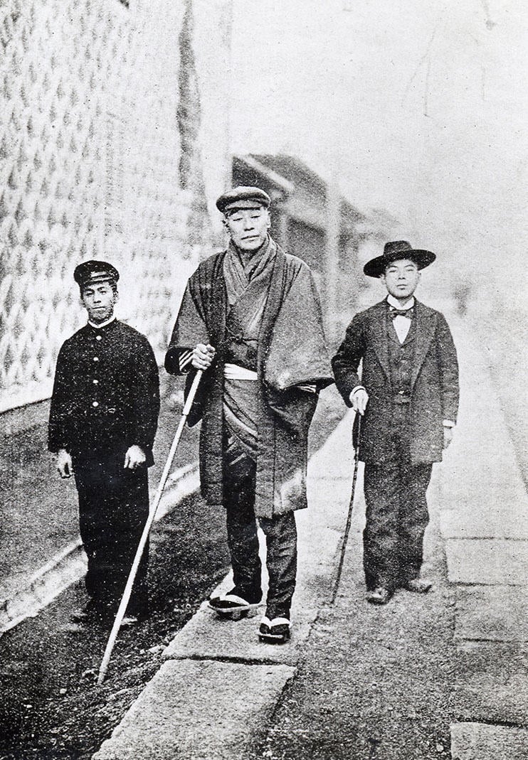 「先ず獣身を成して後に人心を養え」と説いていた福澤先生。どのような事情があっても人間はまず身体の健康が第一であると考え、自身の健康維持・管理のために居合の鍛錬や米つきを毎日欠かさなかった。居合、米つきと並んで健康維持のための日課としていたのが、早朝の散歩である。尻をはしょった和服にももひき、ハンチング帽という服装で、長い竹の杖をつき、当時は人家もまばらな郊外だった芝の三光町(現在の白金三光町)あたりに向けて出発。広尾を経て、目黒で折り返し、古川橋経由で帰ってくる1里半ほどのコースを、1時間あまりをかけて、雨が降っても雪が降っても欠かすことなく歩いていた。