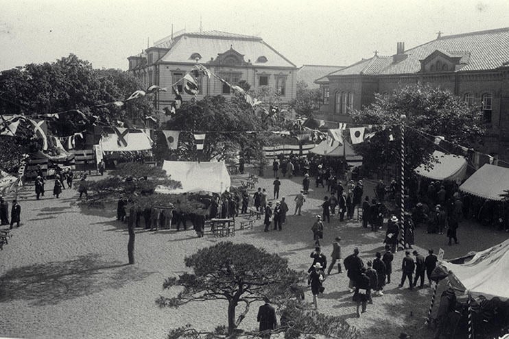 明治末年の図書館開館式の日 三田界隈は祝賀ムード