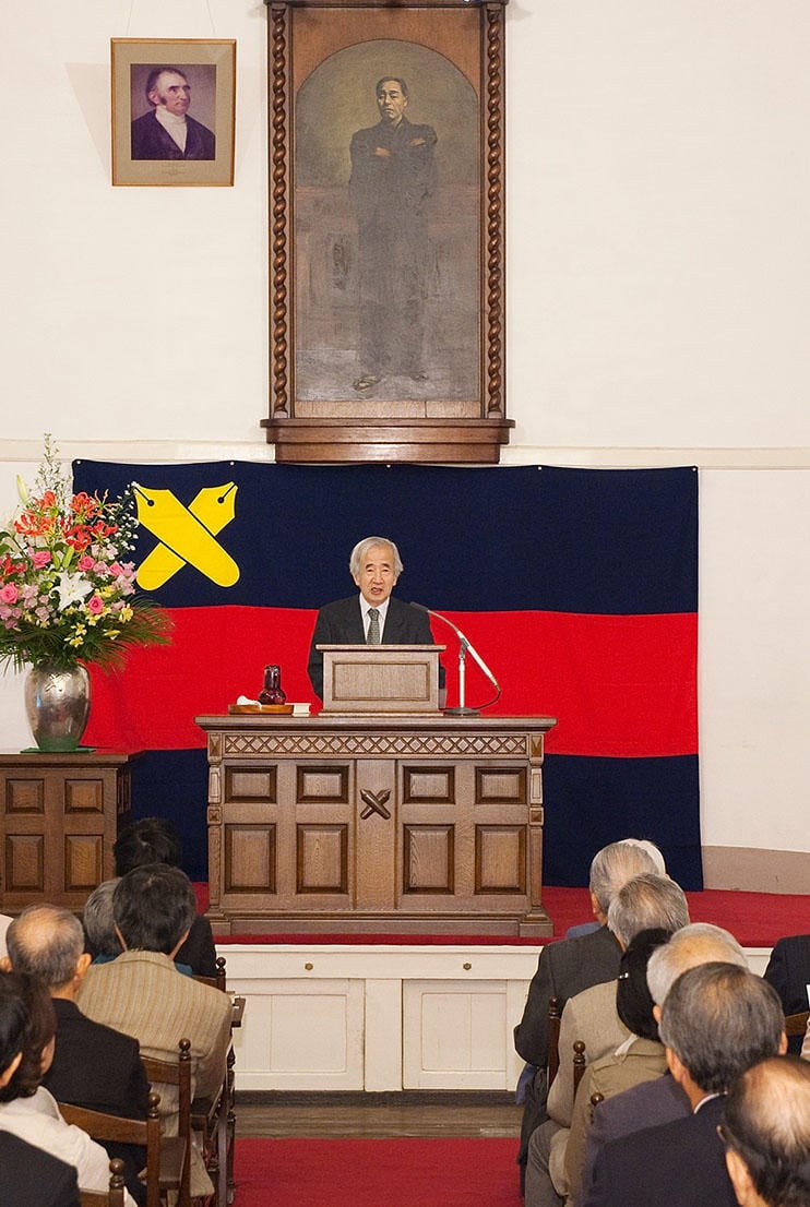 この講演会は、戊辰戦争さなかの1868(慶応4)年5月15日、上野において官軍と彰義隊が戦闘を繰り広げ、砲声が江戸市中に響きわたるなかで、福澤先生はまったく心を乱すことなく、芝新銭座の義塾において悠然と『ウェーランド経済書』の講義を行ったことに由来し、その記念日の5月15日に毎年開催されている。