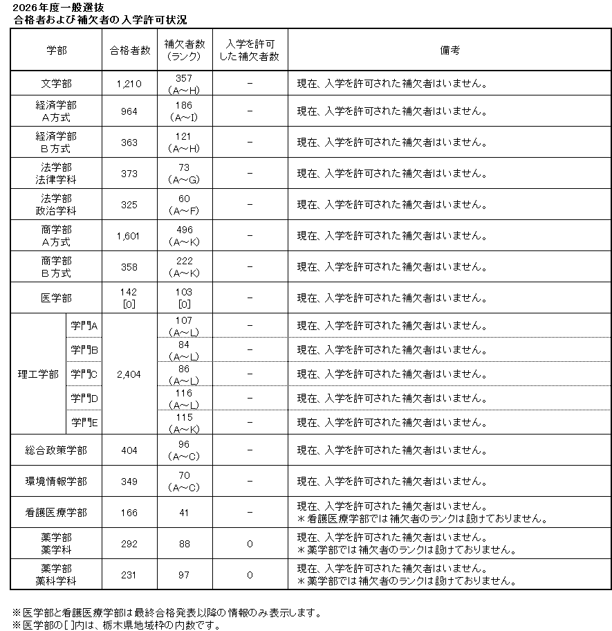 補欠者は入学が許可されるとは限りません。合格者の入学手続状況により欠員が生じた場合に限り、順次入学が許可されます。入学が許可された場合には、マイページの合否結果確認画面の表示内容が更新されますので、必ず自己の責任においてこまめに確認してください。